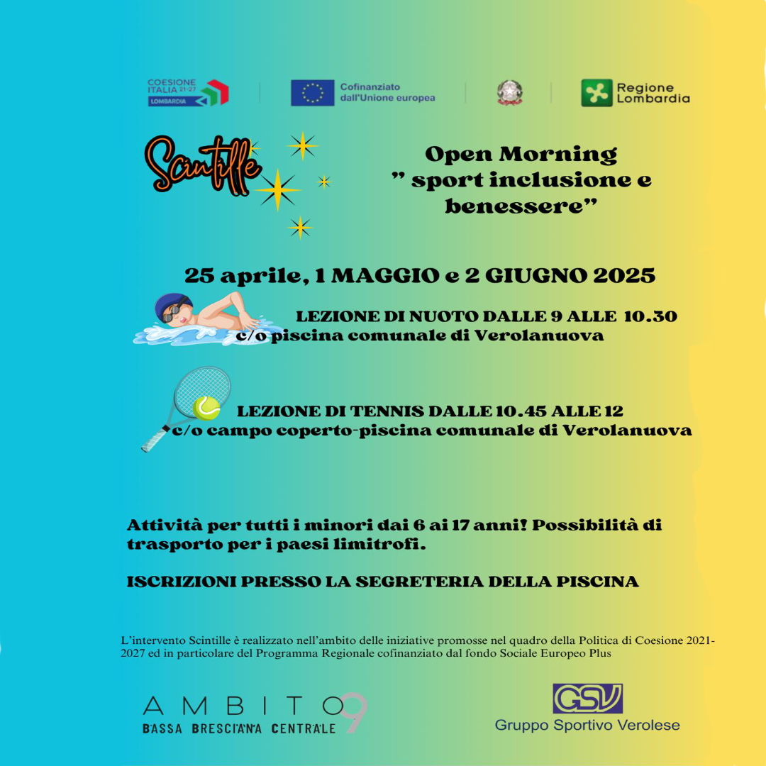 25 aprile – 1° maggio – 2 giugno (nuoto e tennis) vedi locandina >>
